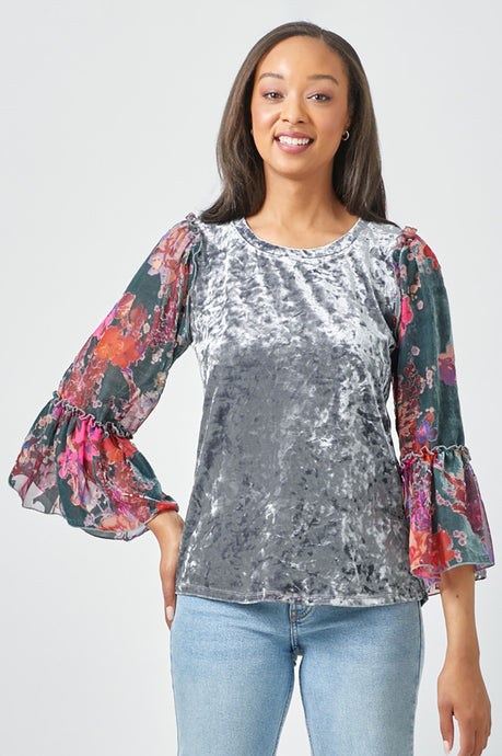 Mystree Burn out Velvet Ruffle Sleeve Top