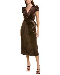 SALTWATER LUXE - Brown Velvet Mid Length Wrap Dress