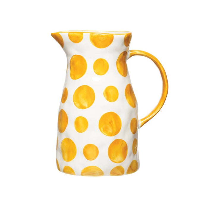 Creative Co- Op Hand-Painted Stoneware Pitcher with Dots