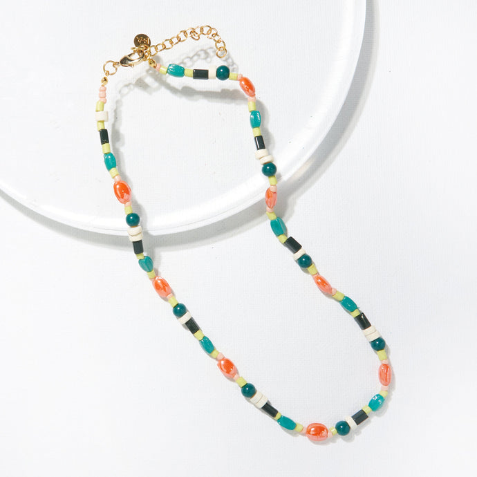INK & ALLOY - Green/Orange Mid Length Beaded Necklace