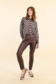 MOLLY BRACKEN - Slim Coated Pants Dark Red