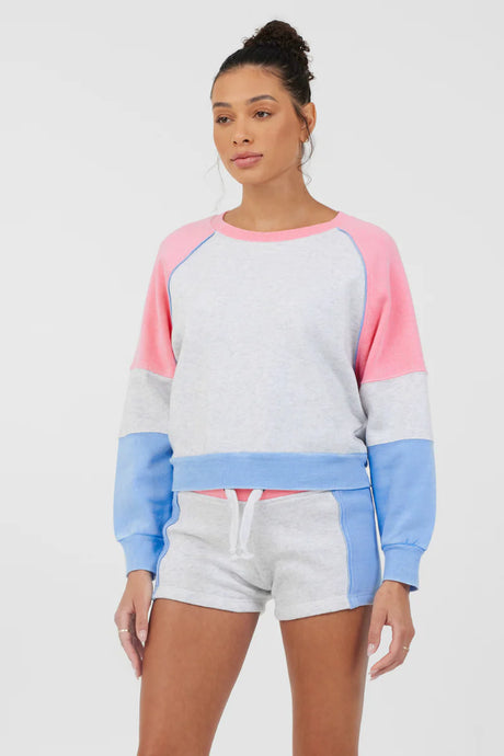 VINTAGE HAVANA - Ash Grey Colorblock Fleece Crewneck