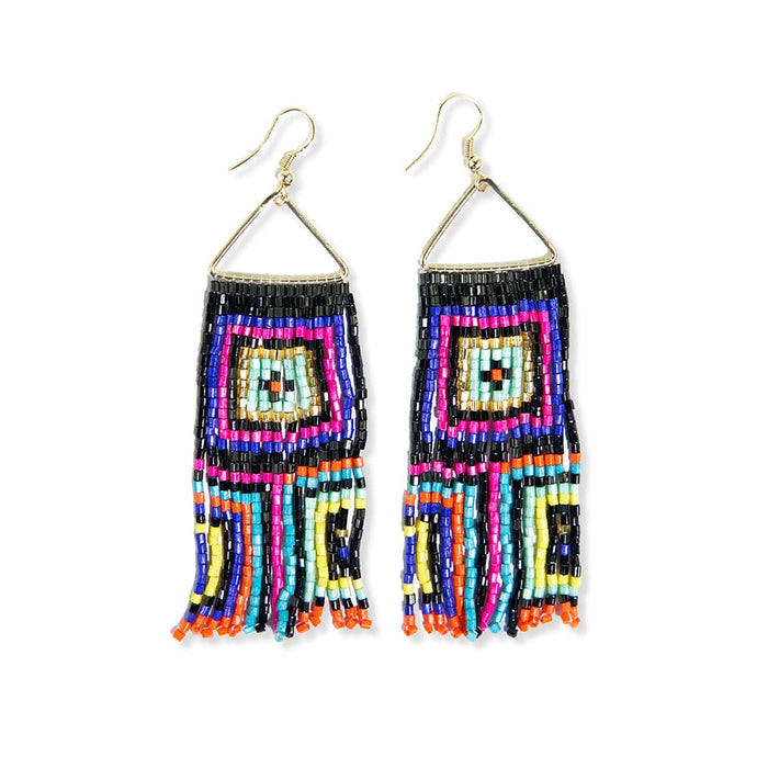 INK + ALLOY - Brooke Squares Beaded Fringe Earrings Neon Black