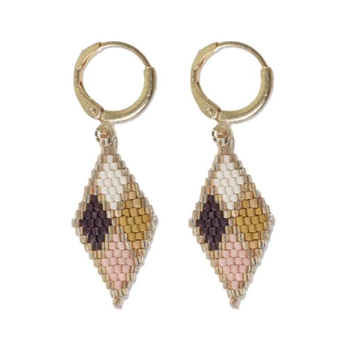 INK + ALLOY - Carmen Mini Gold Hoop Diamond Pattern Beaded Drop Earrings Jaipur