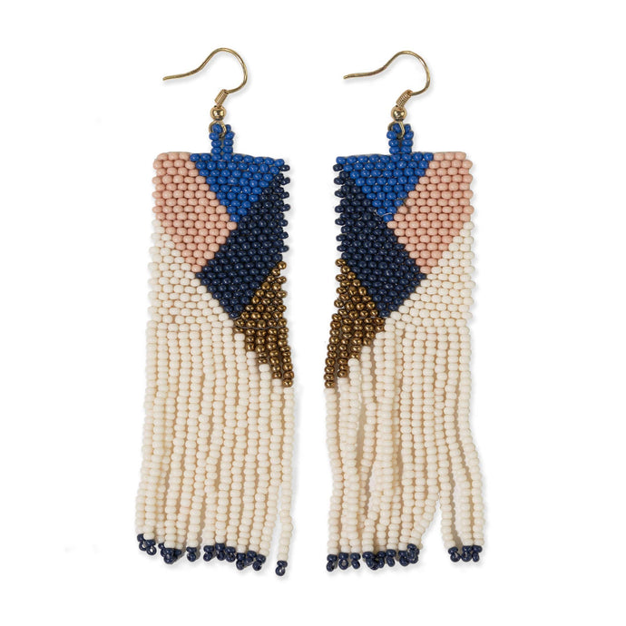 INK + ALLOY - Charlotte Angles Beaded Fringe Earrings Navy